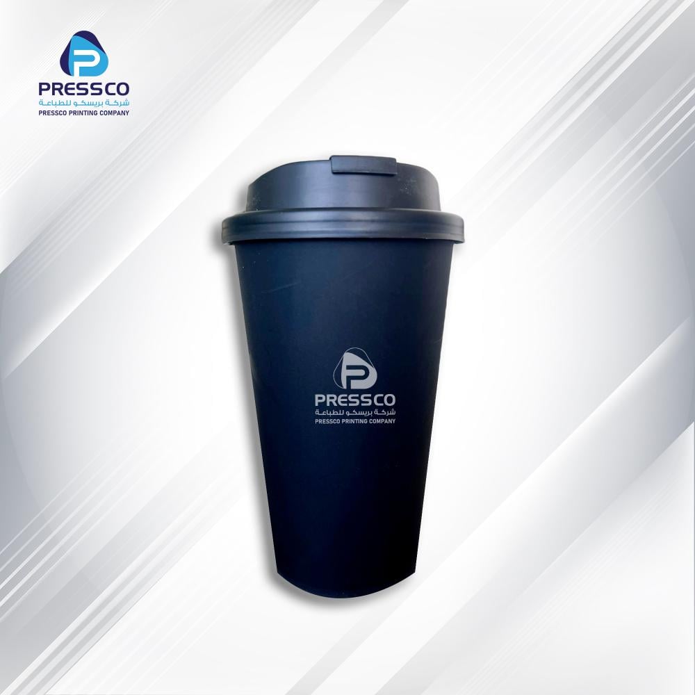 تصميم وطباعة اكواب بلاستيك حرارية P.P لون اسود مطفي